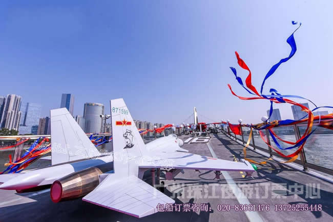 “华夏保险”号新游船外观设计参照“辽宁号”航空母舰造型,总客位392人,游船全船灰白色涂装,硬朗大气,游弋于珠江之上,给人一种气势磅礴之感。游船采用全回转电力推进模式,在节能减排和绿色环保方面迈出了坚实的一步。该船一楼设有“辽宁号”航母舰队模型沙盘展,大厅是专门订制的“郑和下西洋”海图地毯,三楼飞行甲板上搭载了大型仿真歼-15战斗机模型,舱内更放置了多艘古今中外著名战舰船模,向游客普及知名军舰、战船、潜艇等相关知识,致力打造全国首家移动式爱国主义教育基地、国防教育基地,满足国内外游客一睹航母英姿的愿望及实现“登舰梦”。